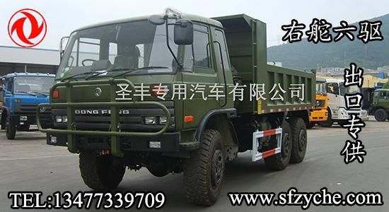 東風(fēng)右舵出口專供六驅(qū)越野卡車,可在此底盤基礎(chǔ)上改裝右舵越野油罐車,右舵越野灑水車,右舵越野廂式車,右舵越野冷藏車,右舵越野自卸車,右舵越野隨車吊等各種特種作業(yè)專用車型。