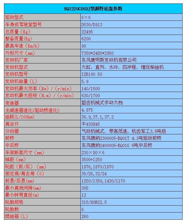 潤知星牌SCS5220XXYEQ型廂式運輸車簡介:六驅(qū)越野箱式應(yīng)急保障車采用東風(fēng)EQ2220GD5DJ型越野汽車底盤,東風(fēng)D530寬體一排半駕駛室,帶空調(diào),6*6驅(qū)動,康明斯190馬力發(fā)動機正宗國五,機械式六檔變速箱,315/80R22.5 越野輪胎,帶備胎,ABS,標(biāo)準(zhǔn)車廂尺寸:4900×2400×2200(mm)。