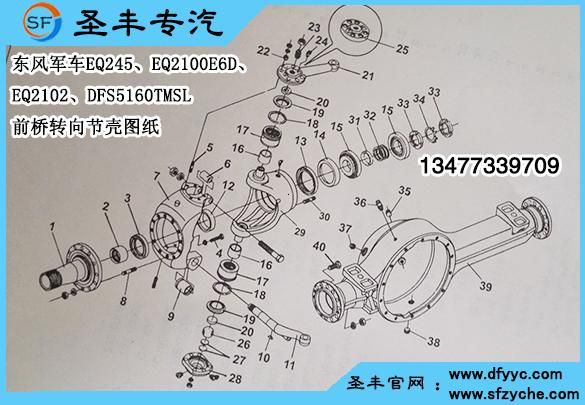 東風(fēng)EQ2102六驅(qū)平頭軍車前橋零件號及對應(yīng)名稱: