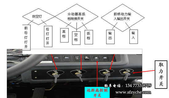 2、收鋼絲繩:拉上駐車(chē)制動(dòng)受控閥,并用木塊,石頭掩住車(chē)輪,將鼓筒離合器操縱機(jī)構(gòu)手柄放在“合”的位置,變速器處于空檔 ,起動(dòng)發(fā)動(dòng)機(jī),踏下離合器踏板,接通遠(yuǎn)距離控制開(kāi)關(guān)(此時(shí)蜂鳴器叫),按下取力器自鎖開(kāi)關(guān),同時(shí)轉(zhuǎn)動(dòng)手柄至“反”的位置,此時(shí)駕駛室頂蓋儀表指示燈亮“箭頭逆時(shí)針旋轉(zhuǎn)”圖案,表明取力器已掛上,此時(shí)慢慢松開(kāi)離合器,平穩(wěn)加油,即可收卷鋼絲繩,開(kāi)始牽引。牽引完后,踩下離合器踏板,按下取力器自鎖開(kāi)關(guān),同時(shí)轉(zhuǎn)動(dòng)手柄至“0”的位置,將鼓筒離合器操縱手柄放在“離”的位置,關(guān)閉遠(yuǎn)距離控制開(kāi)關(guān)。