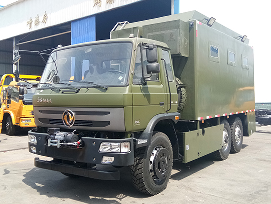 相關車型東風國五六驅越野自行式炊事車_東風軍用六驅炊事車_六驅野戰(zhàn)自行式餐廚車為部隊提供一種機動、高效的專用現(xiàn)場飲食保障裝備,滿足部隊平時及野外值勤時的主副食的飲食保障工作,并解決部隊行進中不停車做飯菜的需要及供應飲用水的需求。六驅自行炊事車功能簡介:該裝備主要編配于部隊,為部隊官兵野外作業(yè)時提供良好的飲食保障:具有制作食品、保溫食品和儲存食品的空間與功能、并具有提供開水和餐具消毒的功能。
